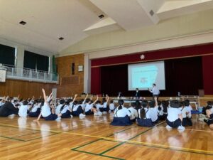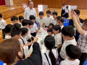 石川県加賀沿岸流域下水道を管理する柿本商会・石垣メンテナンスグループは、5月23日(金)に能美市立辰口中央小学校で4年生約90人に下水道出前講座を開催した。